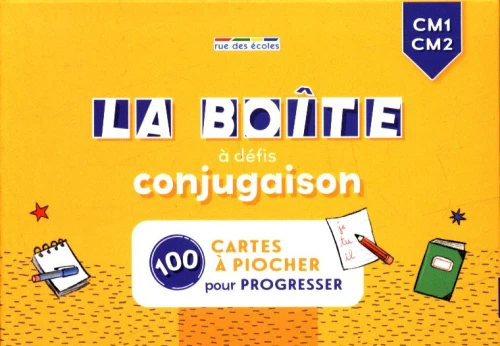 Cette boîte contient 100 cartes à piocher, pensées pour s’entraîner régulièrement et consolider les bases de la conjugaison de manière dynamique et motivante.