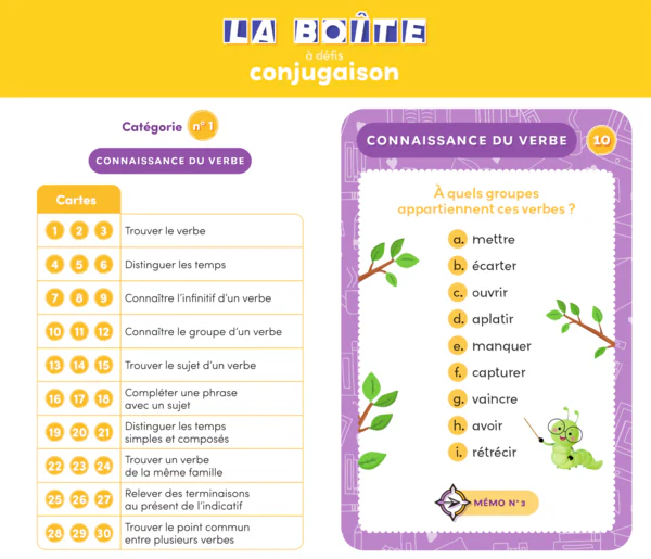 La boîte à défis Conjugaison est aussi parfaite pour instaurer une routine courte et efficace à la maison :
