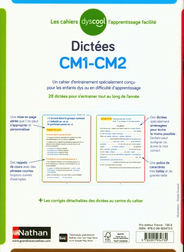 ✏️ Votre enfant rencontre des difficultés en dictée ? Ce cahier a été conçu spécialement pour les enfants dys et tous ceux en difficulté d’apprentissage. Grâce à une approche bienveillante et progressive, il leur permet de gagner en confiance et en autonomie.
