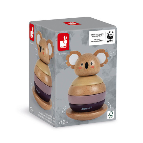 Le saviez-vous ? Le Koala est l’animal qui dort le plus sur Terre, de 18 à 20 heures par jour ! Jouet développé en collaboration avec WWF®. Janod soutient les efforts du WWF® pour protéger l’environnement et la biodiversité grâce à une nouvelle gamme de jouets fabriqués à partir de matériaux plus durables. À travers cette gamme, nous visons à inspirer et à permettre à la jeune génération de se mobiliser pour la faune et la nature.