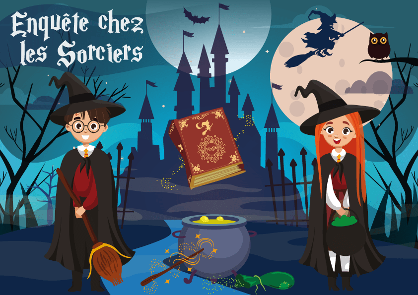 jeu enigme maison facileDécouvrez notre enquête policière chez les sorciers, un jeu thème sorcier dans l’univers magique de la sorcellerie. En effet, le dangereux livre « des sortilèges les plus dangereux de toute l’histoire de la sorcellerie » a été volé en pleine nuit !