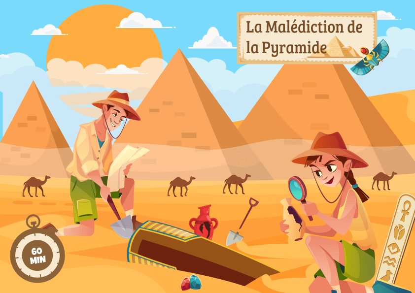 Escape game Égypte : 1903 – Tu reçois une lettre étrange de ton ami explorateur & égyptologue Howard Carter. Dans sa lettre il explique en effet avoir fait une grande découverte en Égypte : la pyramide du Pharaon Thoutmôsis. Malheureusement une malédiction semble planer sur la pyramide, et ton ami pourrait bien être en danger. Sans nouvelles de sa part, tu décides de partir à sa recherche, et affronter la malédiction du roi !