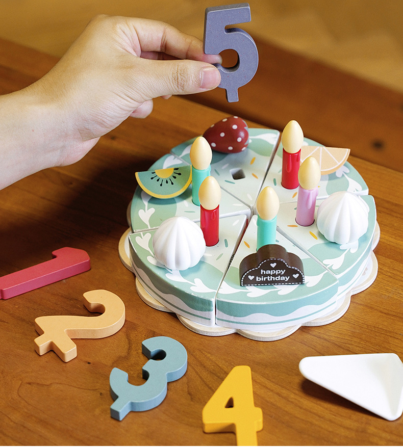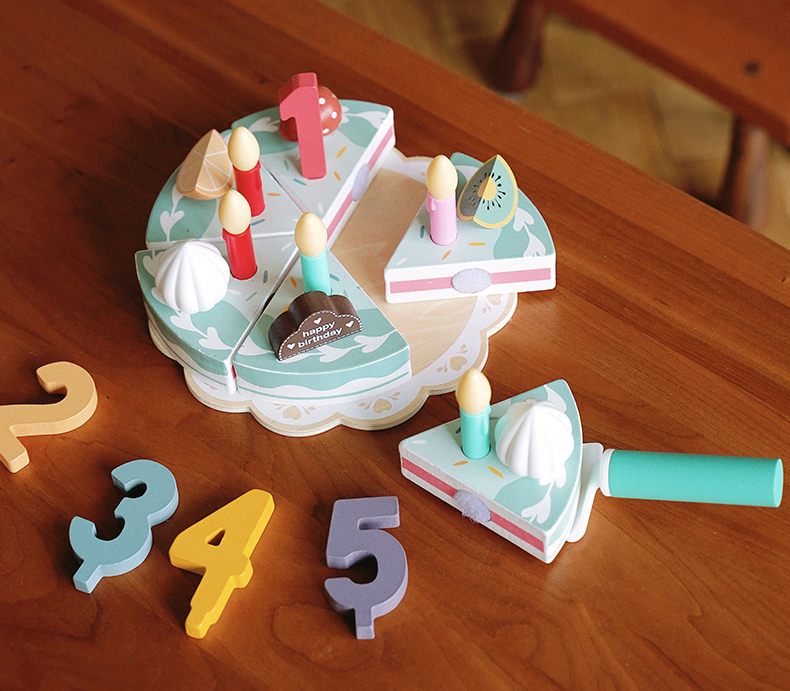 – Simulation de gâteau d’anniversaire – Votre enfant prendra plaisir à vous offrir une part de son gâteau – Toutes les pièces sont en bois