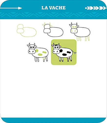 80 fiches plastifiées pour apprendre à dessiner pas à pas : des animaux, une maison, un dinosaure, une licorne, une voiture…