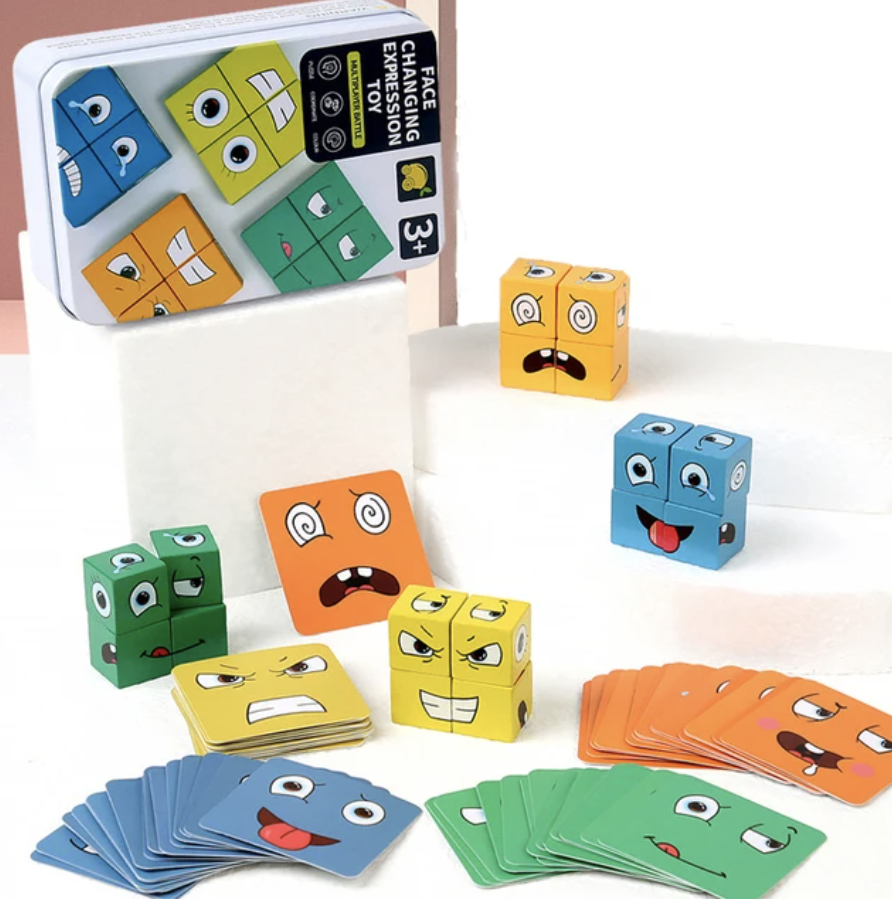 2. 16 blocs en plastique avec des yeux et bouches et 64 expressions différentes à réaliser