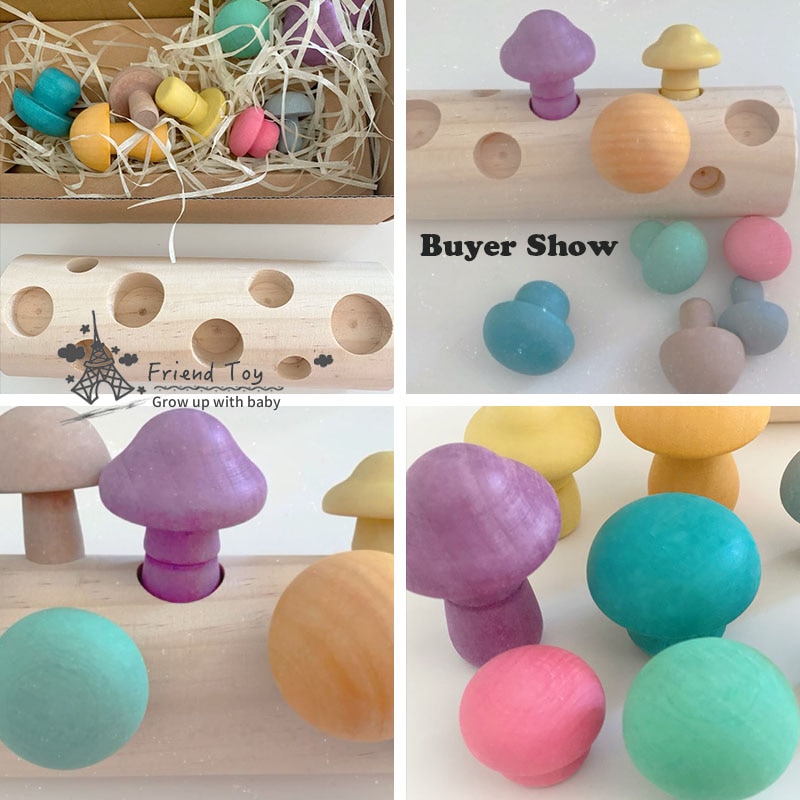 Livraison sous 10 jours, dès 3 ans. Jeu en bois inspiré de la pédagogie Montessori. L’objectif ? associer le bon champignon avec la bonne taille de trou sur le rondin de bois ! Le produit et disponible avec ou sans boite.