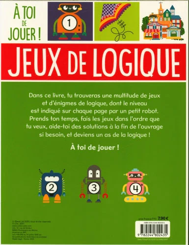 Prends ton temps, fais les jeux dans l’ordre que tu veux, aide-toi des solutions à la fin de l’ouvrage si besoin, et deviens un as de la logique !