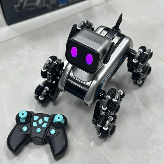 Imaginez un jouet qui se déplace avec fluidité sur le carrelage de votre cuisine, le tapis du salon ou même les petits obstacles du jardin. Grâce à ses roues omnidirectionnelles, notre jouet robot se déplace dans toutes les directions avec une agilité surprenante. Fini les jouets qui restent bloqués ou qui tombent à la renverse! Ses quatre pattes robustes lui permettent de naviguer sur différentes surfaces et de réaliser des mouvements à 360 degrés qui fascineront petits et grands.