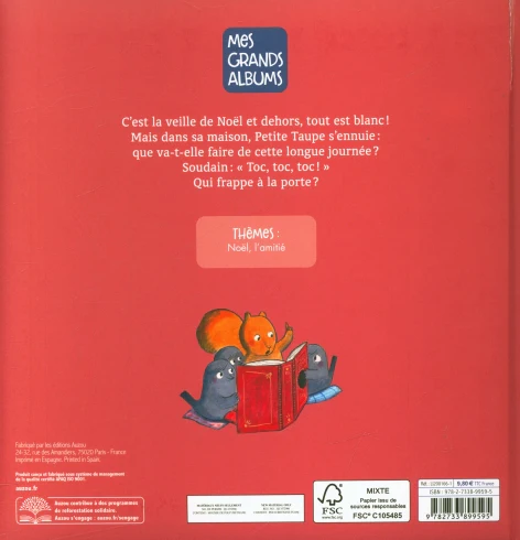 Mais dans sa maison, Petite taupe s’ennuie… Que va-t-elle faire de cette longue journée ? Soudain, » Toc, toc, toc ! » Qui frappe à la porte ? Un joli conte de Noël qui célèbre l’amitié et la solidarité.