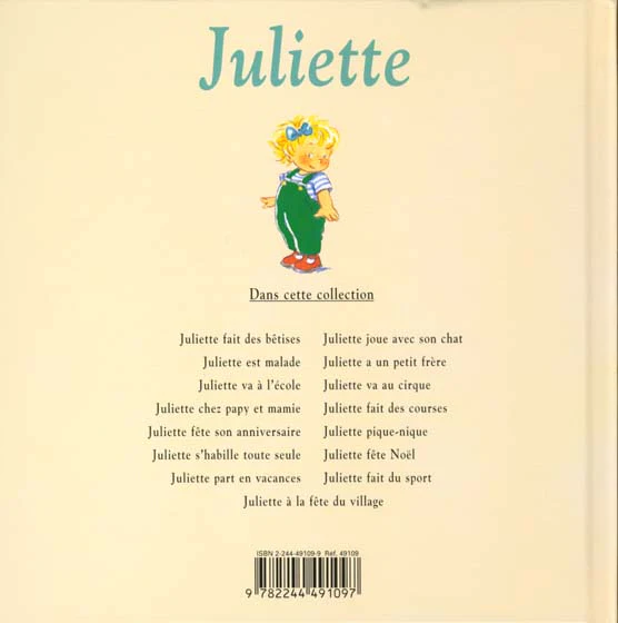 Juliette apprend et grandit, entourée de son petit frère Pierre, de Charou, son chat, de son papa, de sa maman, de sa cousine Noémie et de ses grands-parents.