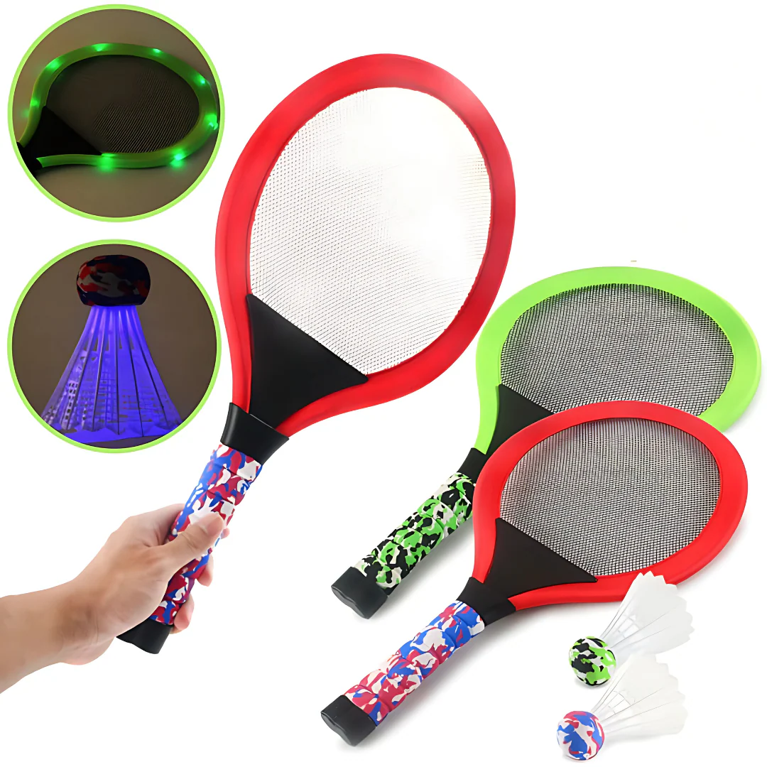 Kit de Badminton & Tennis Lumineux LED – Raquettes Enfants (Jeu de Nuit)