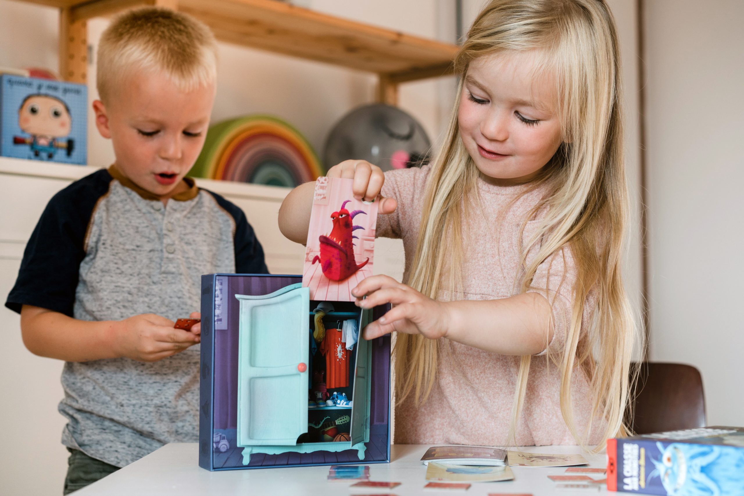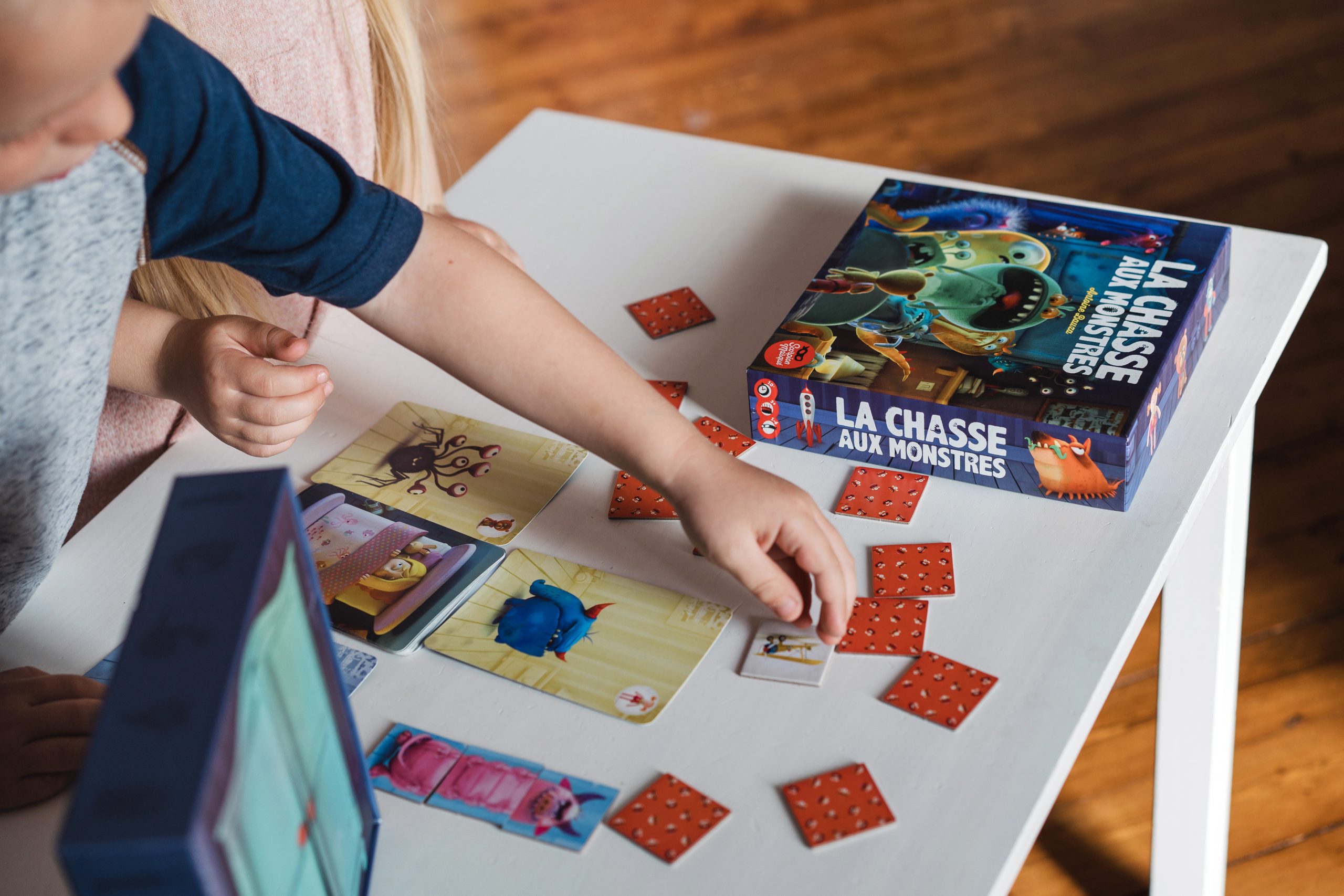 La Chasse aux monstres est un jeu de mémoire coopératif. Pendant la nuit, des monstres sortent de sous le lit de l’enfant. Pour les chasser dans le placard et gagner la partie, il faudra retrouver le bon jouet. Attention, si on se trompe, de nouveaux monstres apparaîtront.