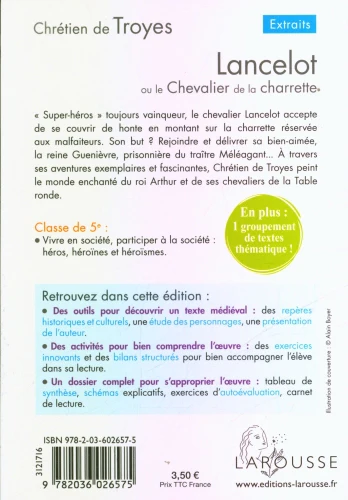 On y suit Lancelot, le plus célèbre chevalier de la Table ronde, prêt à tout pour sauver la reine Guenièvre, même à affronter la honte de monter sur une charrette réservée aux criminels. Son courage, sa loyauté et son amour font de lui un véritable héros.