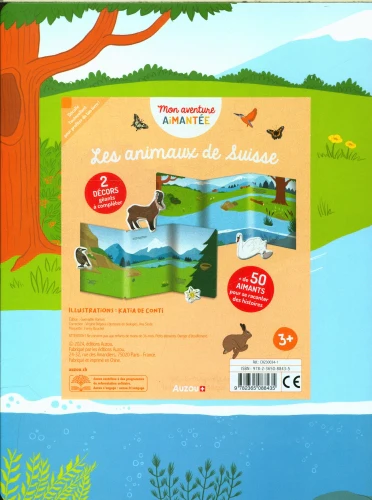 Deux décors géants magnétiques sur le thème des animaux de Suisse, où l’enfant invente et anime ses histoires grâce à 50 aimants.