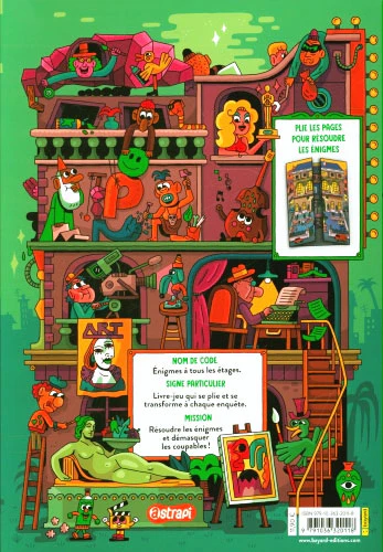 12 énigmes originales à résoudre, avec pour chacune un domaine artistique différent, des personnages loufoques, des situations farfelues.