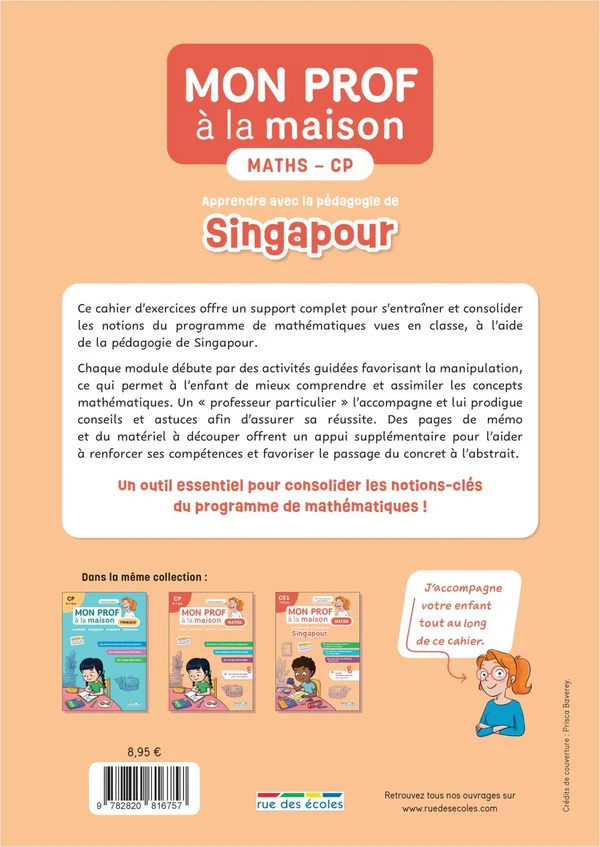 Ce cahier d’activités a été conçu en accord avec les recommandations de la pédagogie de Singapour. Il s’agit d’une approche des mathématiques reconnue pour son efficacité à améliorer les compétences de l’enfant dans cette matière.