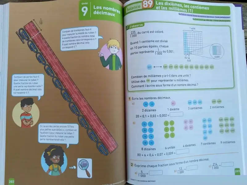 - faire le lien entre les fractions, les divisions et les nombres décimaux ;