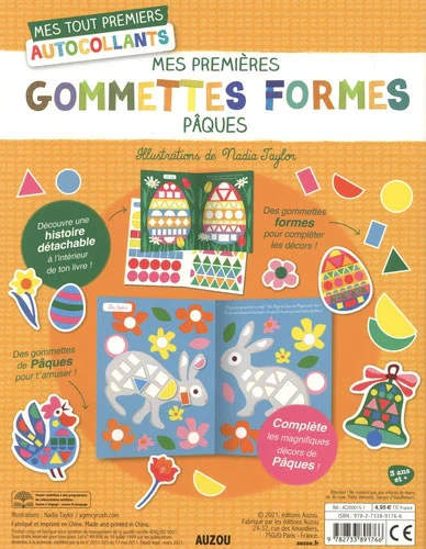 Des autocollants et des décors à animer! Découvre une petite histoire à animer à l’intérieur de ton livre ! Anime ta petite histoire comme tu veux avec tes premières formes ! Plus de 250 autocollants repositionnables sur le thème de Pâques!