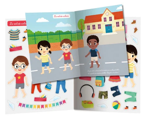 Plus de 500 autocollants repositionnables sur le thème de la mode et des vêtements, ainsi qu’un carnet de décors à animer de 72 pages !