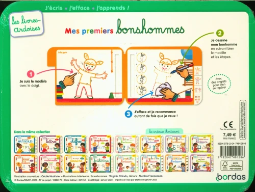 Livre-ardoise pour apprendre à dessiner mes premiers bonhommes.