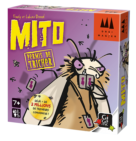 Pour se débarrasser au plus vite de ses cartes, tous les moyens sont bons, même… la triche ! Chacun son tour prend le rôle de la Gardienne Punaise qui veille au grain en surveillant les autres. Serez-vous honnête en respectant les règles ou allez-vous tricher ? Mettre une carte dans sa manche, en faire tomber sur ses genoux, tout est possible… à condition de ne pas se faire prendre ! Attention toutefois à rester attentif au jeu, car des cartes spéciales viennent régulièrement bousculer la partie. Mito est un jeu «mitique» et complètement dingo.