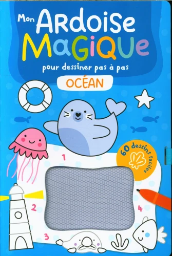 Avec Mon ardoise magique pour dessiner pas à pas : L’océan, les enfants découvrent l’univers marin tout en apprenant à dessiner facilement leurs animaux préférés : dauphin, poisson-clown, tortue, requin et bien d’autres.