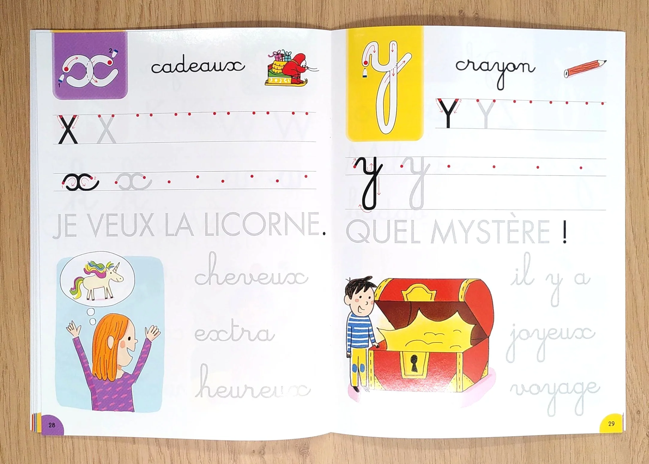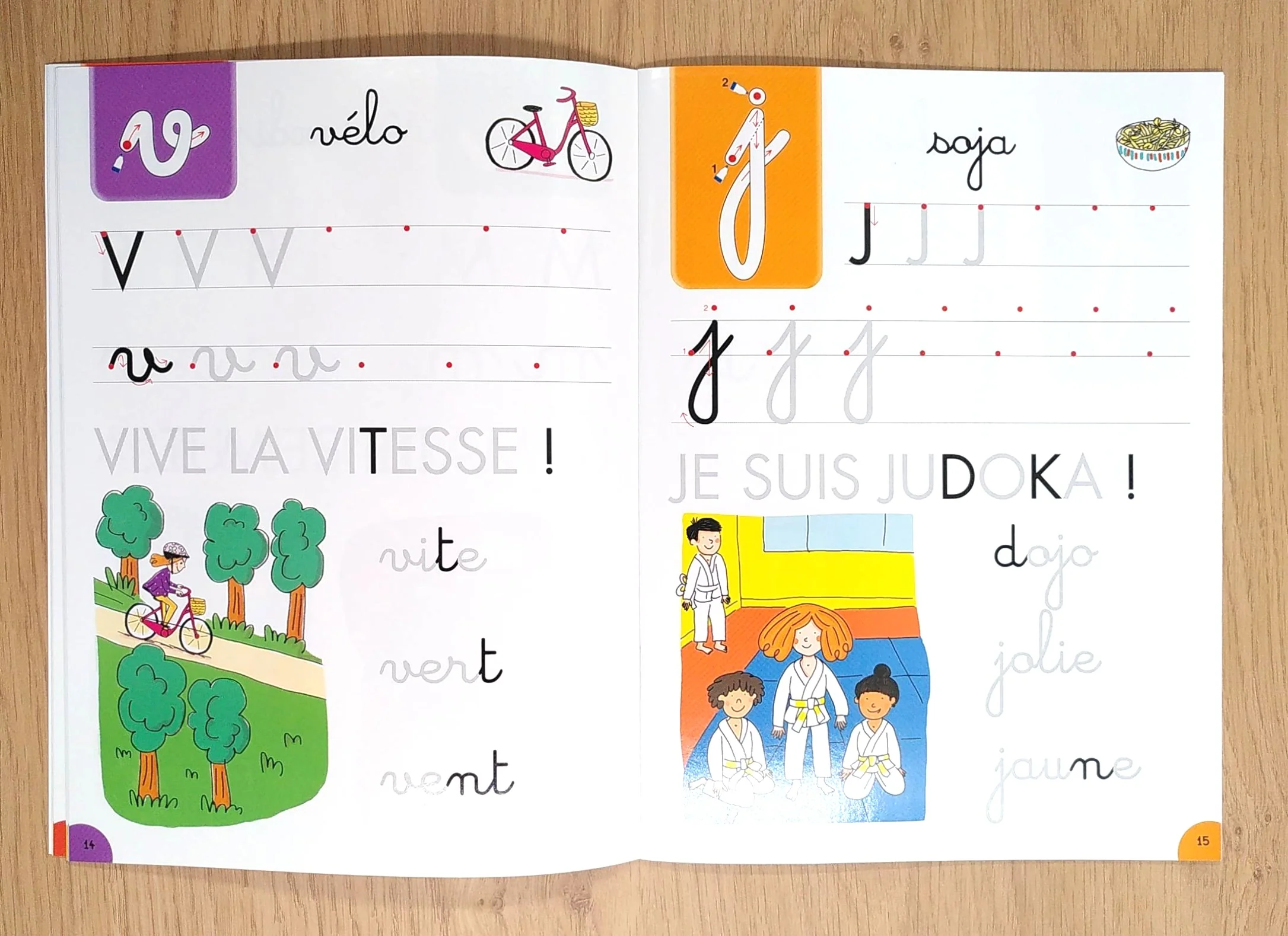 Avec des modèles fléchés pour tracer les lettres et des mots à compléter.