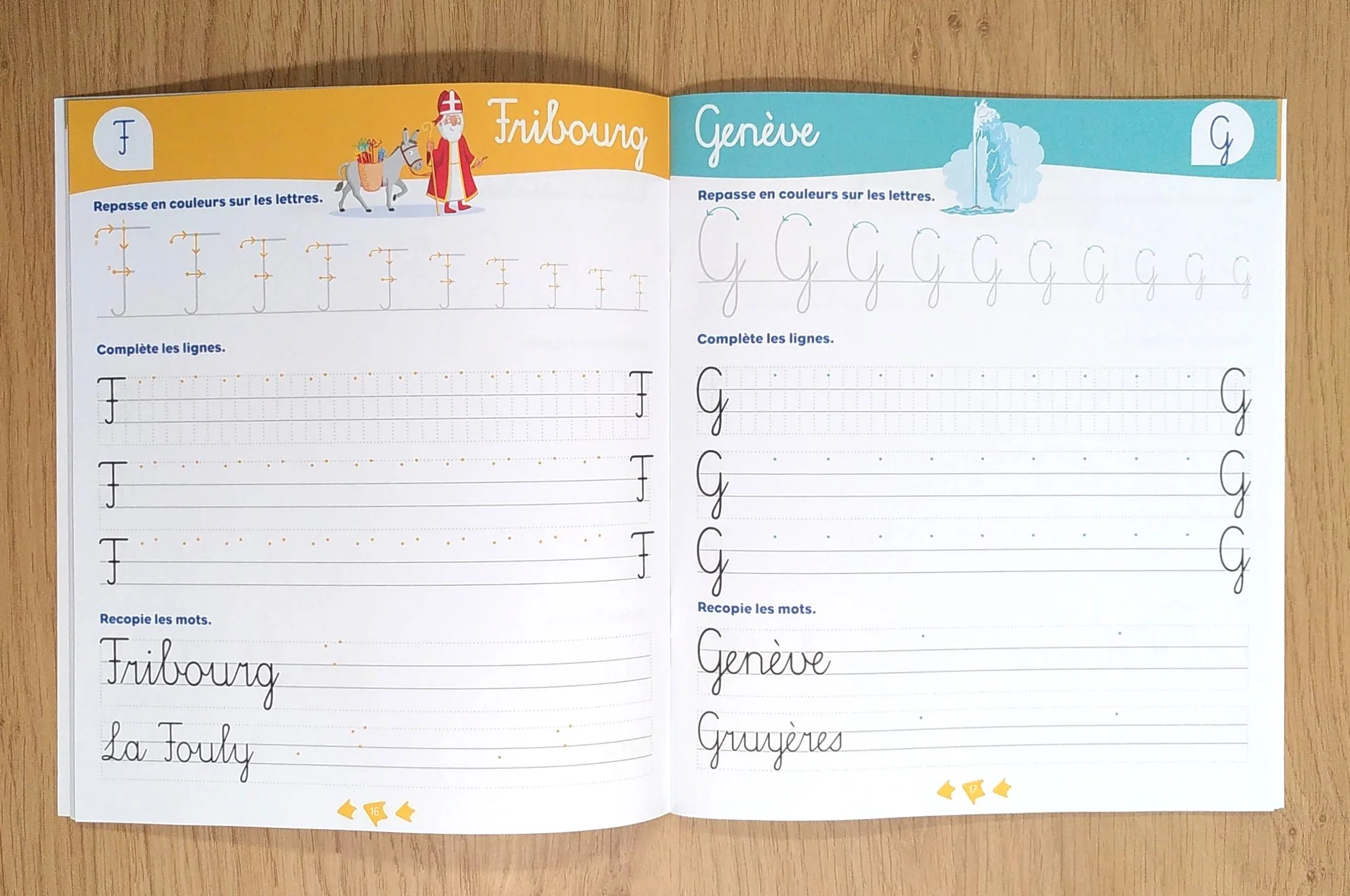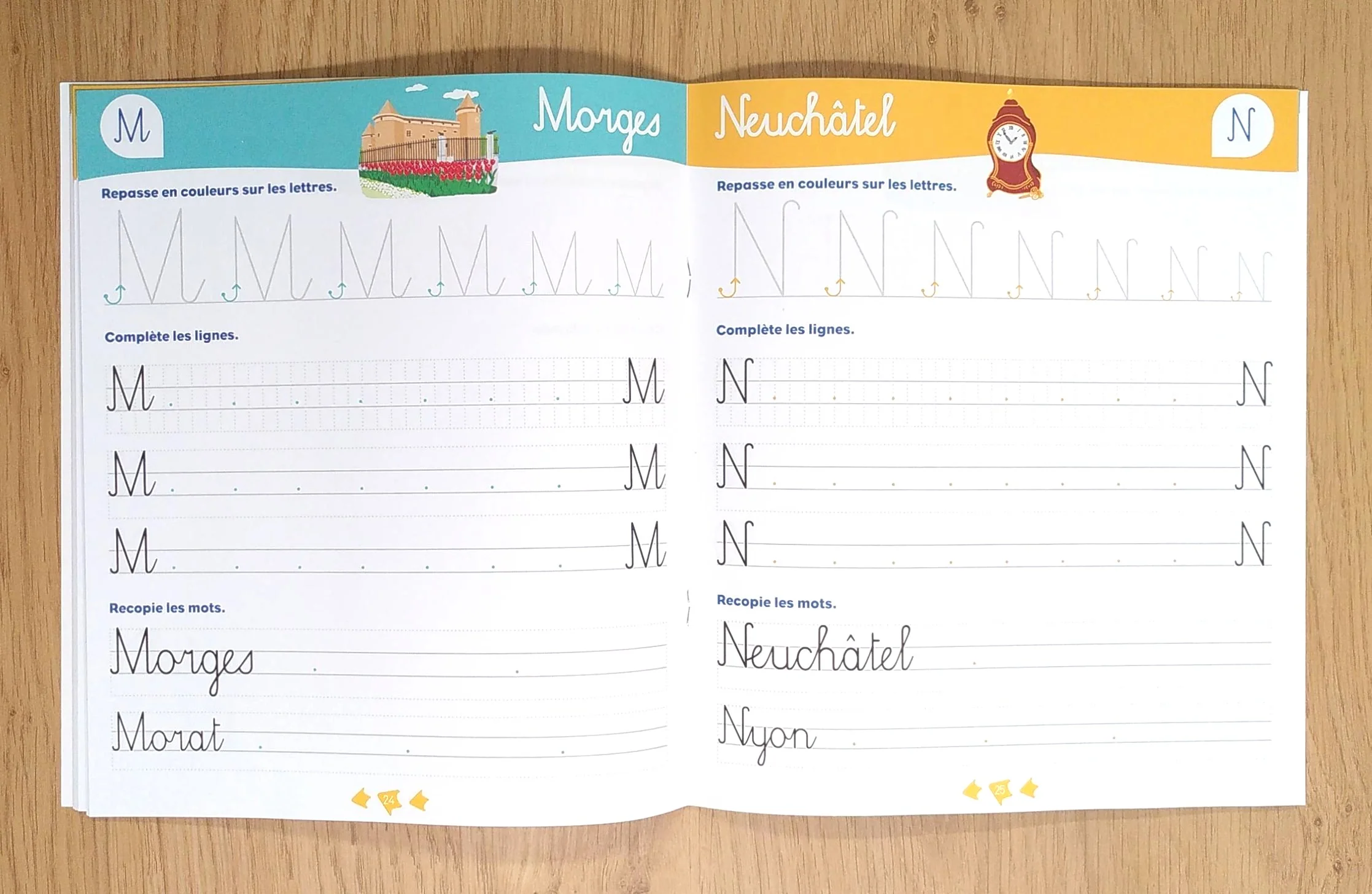 Pas à pas, l’enfant apprend à écrire des mots avec les lieux et monuments suisses.