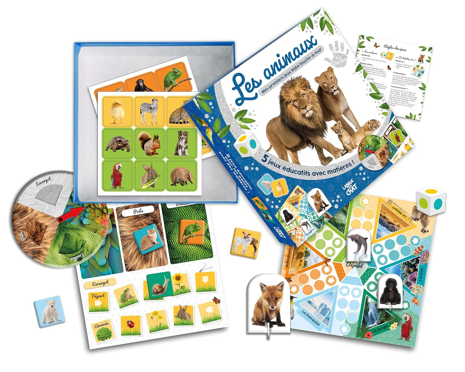 5 premiers jeux d’éveil avec des animaux en photo et des matières à toucher ! Ce joli coffret contient 5 jeux aux règles simples, adaptés aux petits dès 3 ans : le « Touche-à-tout » avec une roue à tourner et des matières à toucher, le jeu « Où habites-tu ? » qui consiste à associer différents animaux à […]