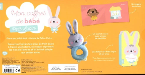 Un coffret découverte pour accueillir bébé avec un imagier en tissu tout doux, un hochet adapté aux toutes petites mains et une très jolie histoire racontant l’histoire de Petit Lapin.