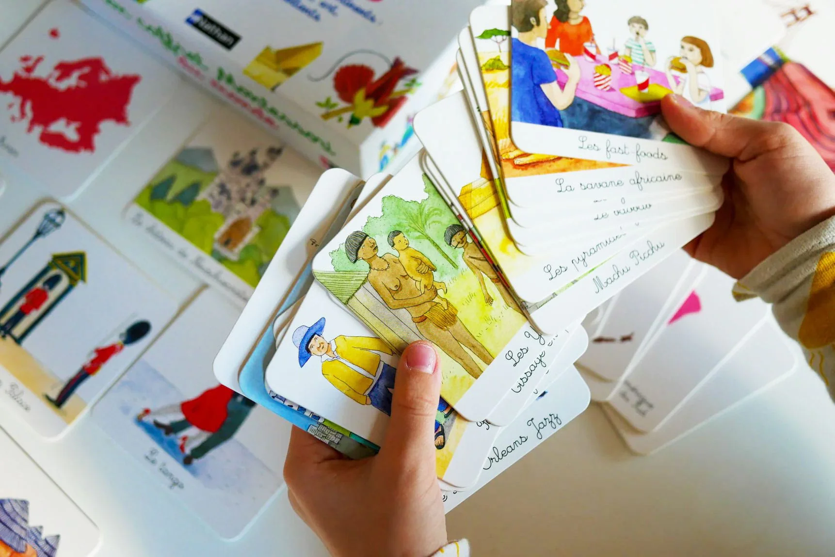 • 10 cartes par continent pour en découvrir des éléments caractéristiques: habitants, paysages, monuments, art…
