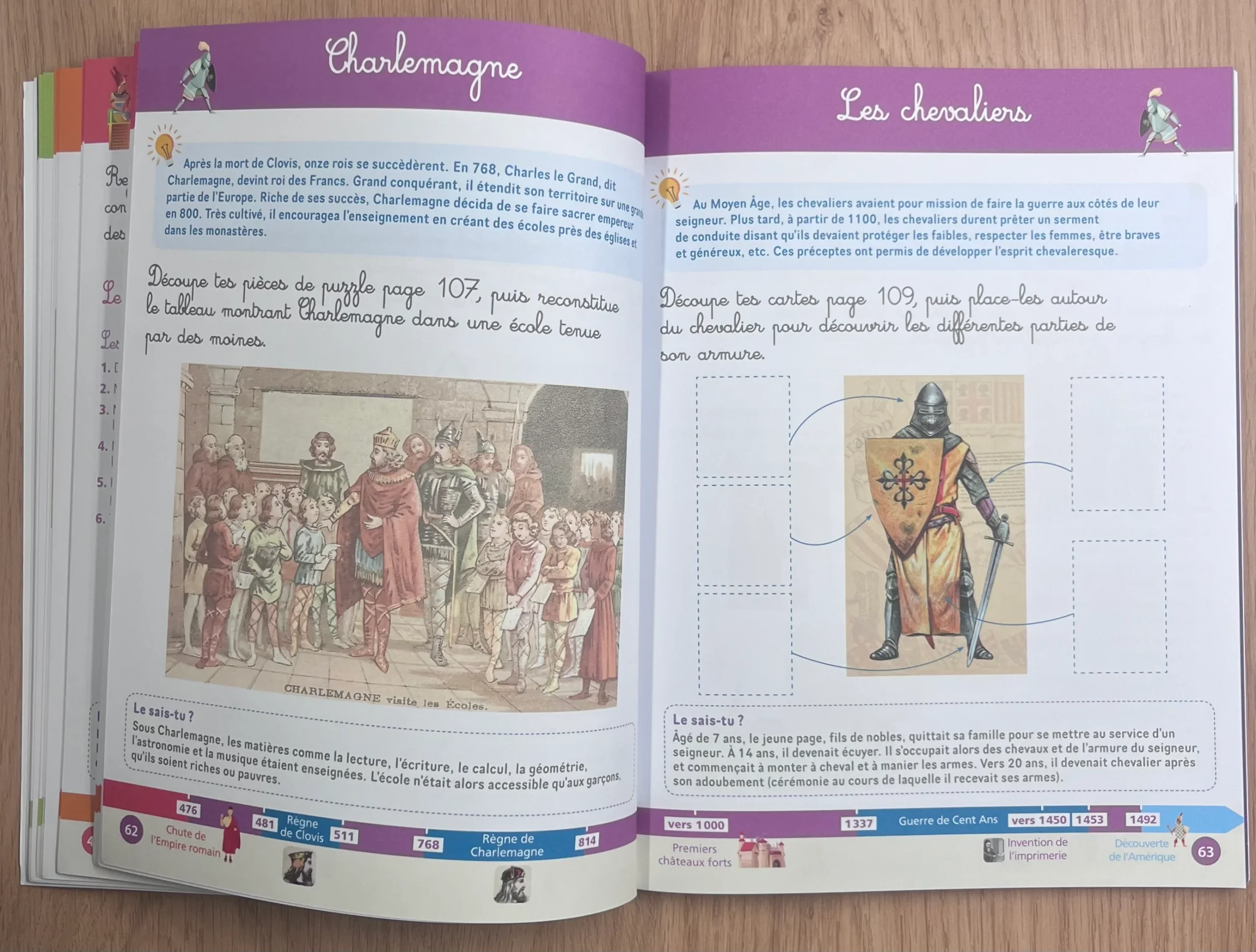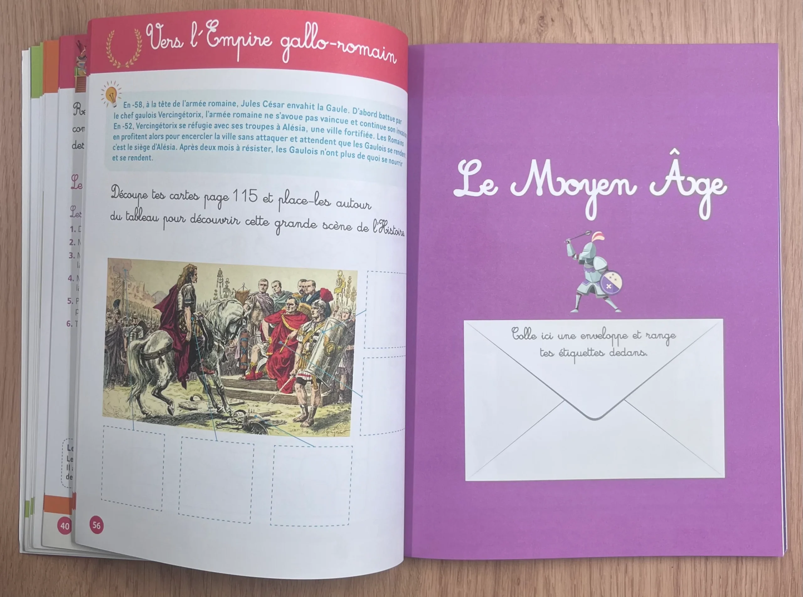 Ce cahier propose aux enfants de 5 à 8 ans une découverte de l’histoire (de la Préhistoire aux temps modernes) à travers des activités ludiques basées sur la pédagogie Montessori : mises en paires (associer une image et une période, une image et un événement…), manipulations pour maîtriser la chronologie, etc. A la fin du cahier, le lecteur trouvera du matériel à découper et à conserver : cartes à doigts, cartes de nomenclature, ligne du temps, etc.