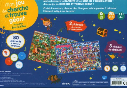 2 plateaux de cherche et trouve, 80 éléments à retrouver dans chaque scène et 3 niveaux de difficulté : débutant, champion et super champion !