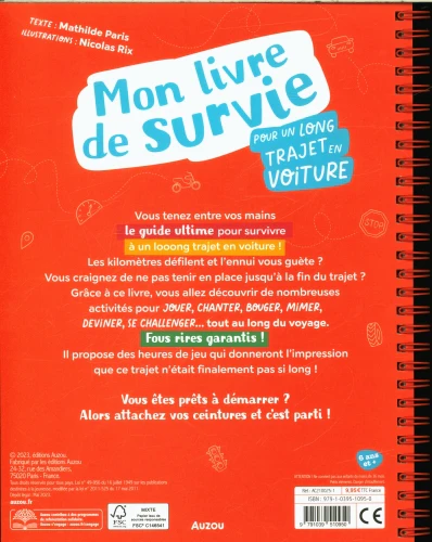 MON LIVRE DE SURVIE POUR UN LONG TRAJET EN VOITURE offre des 124 pages d’activités variées, des jeux et des défis qui rendront le voyage des enfants agréable et amusant.