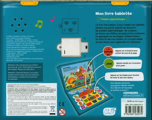 Ludique, éducatif et sensoriel, ce livre est idéal pour éveiller la curiosité des jeunes lecteurs et les accompagner dans leurs premiers apprentissages, en autonomie ou en partage avec un adulte.