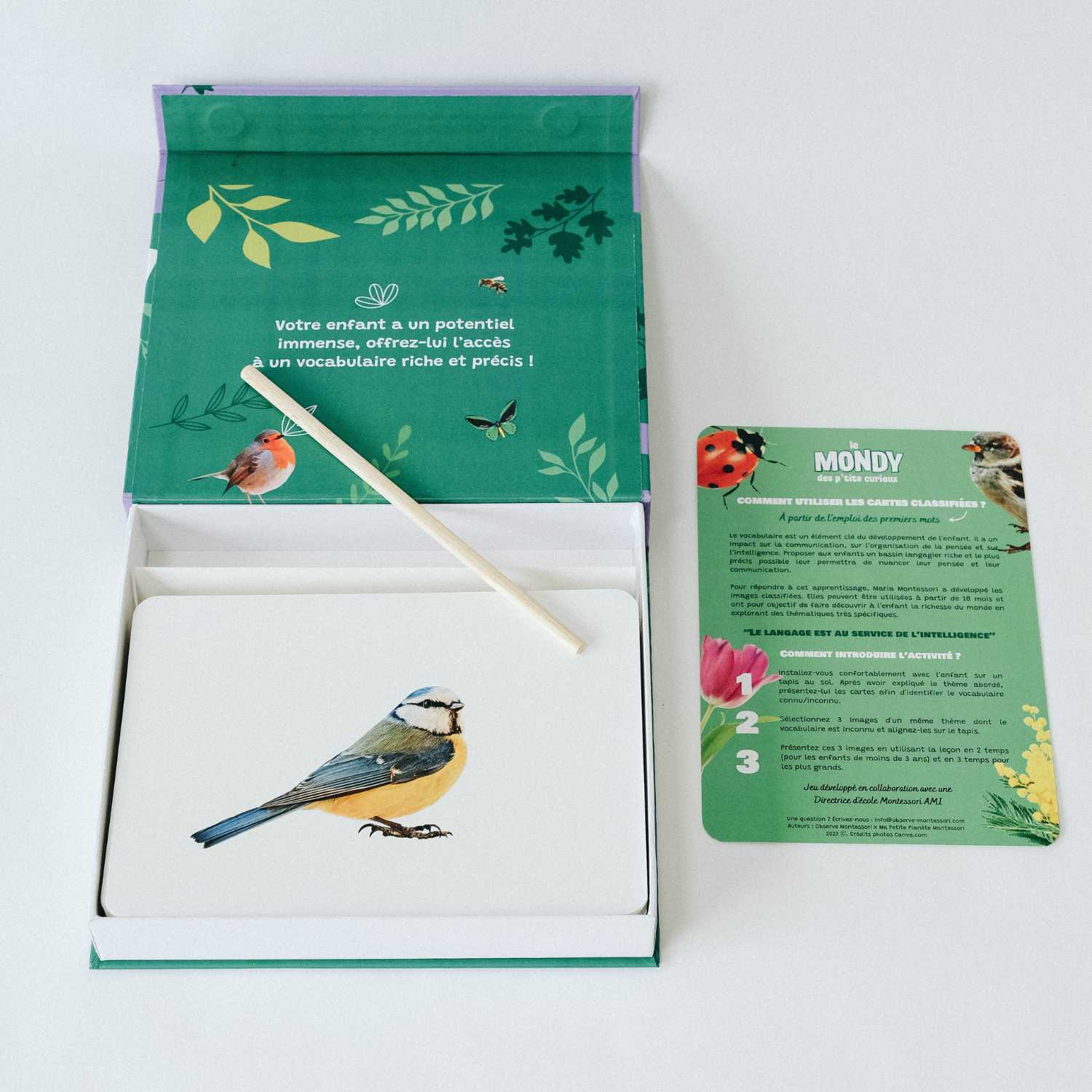 - 3 univers à découvrir : les Oiseaux du jardin, les Fleurs, les Insectes.