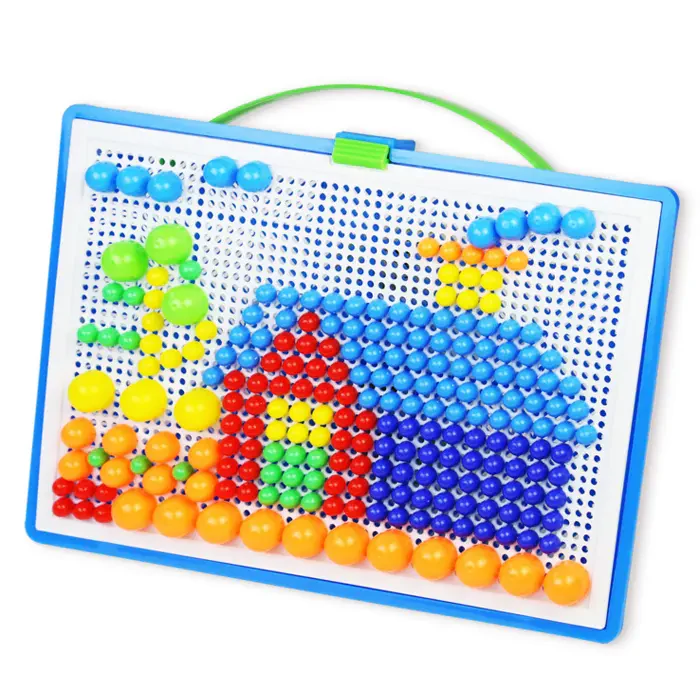 Les enfants aiment beaucoup de genre de jeu très coloré qui leur permettent de développer leur coordination et leur motricité fine. Les petits picots, en plastique de qualité sont bien ronds, lisses et solides.