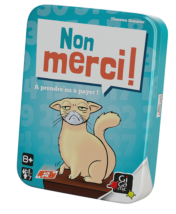 À votre tour de jeu, faites le choix d’accepter une carte ou de dire « Non merci ! » en posant l’un de vos jetons sur la carte refusée. C’est ensuite au joueur suivant de prendre une décision et éventuellement de récupérer votre jeton. Chaque carte acceptée fait perdre des points. Mais si vous reconstituez les suites, vous ne perdez que la valeur de la plus petite carte de la suite. Gérez au mieux vos jetons, car, de toute façon, il vous faudra accepter des cartes.