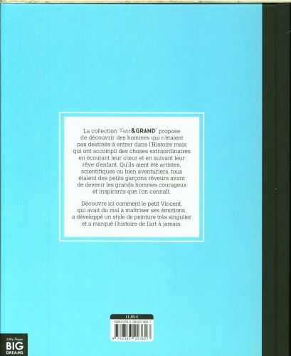 Ce livre raconte l’histoire de Vincent, un enfant curieux et sensible, qui, malgré les épreuves, n’a jamais cessé de croire en son rêve : devenir artiste. À travers des mots simples et des illustrations vibrantes, l’enfant découvre comment Vincent a transformé ses émotions en œuvres d’art inoubliables, comme La Nuit étoilée ou Les Tournesols.