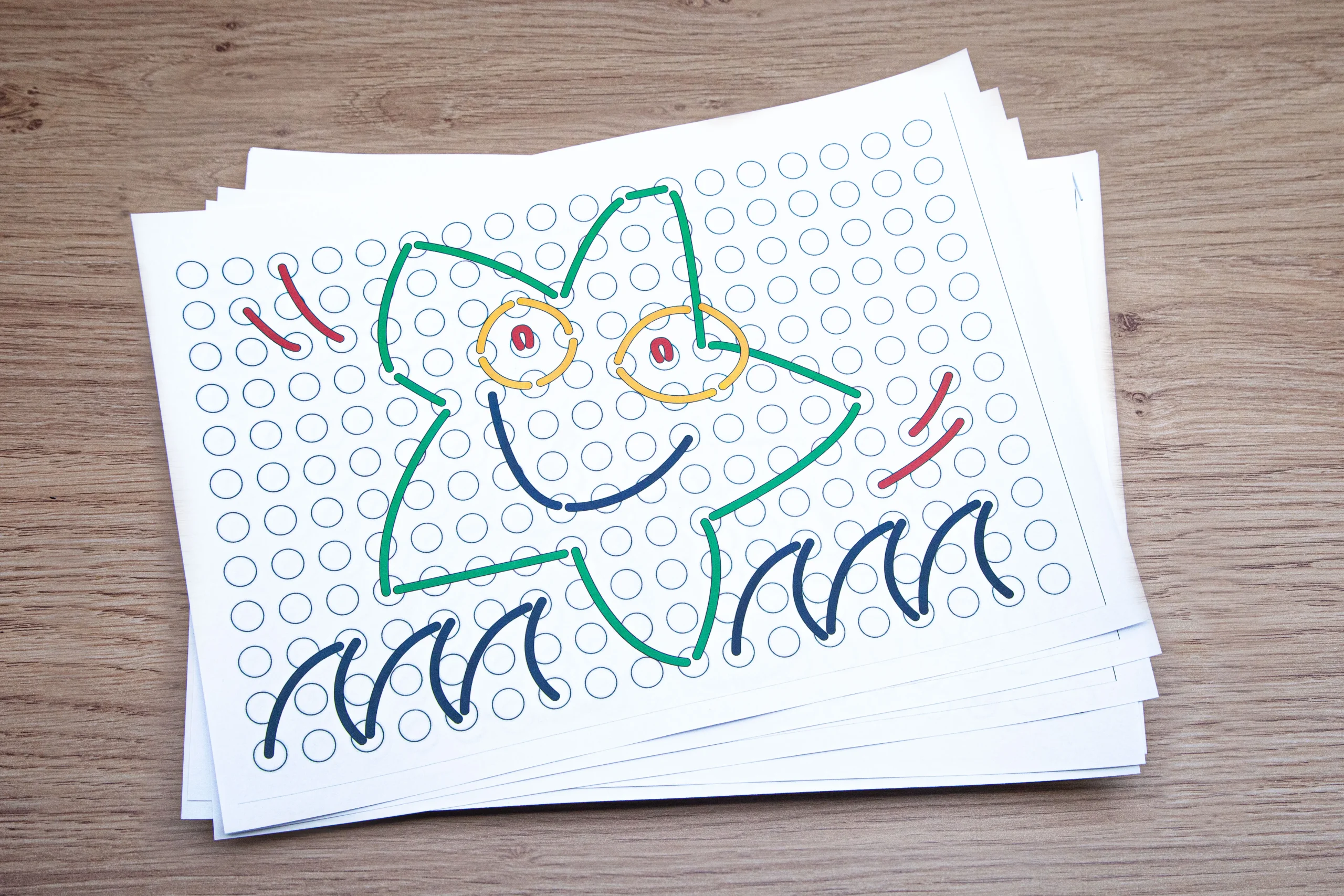 Percer les trous de cette plaque avec le crayon lui demandera une excellente coordination visuo-motrice.