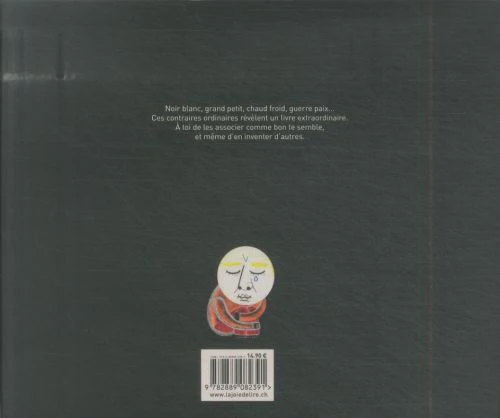 Chaque double page présente des contraires : réveillé et endormi, ami et ennemi, constructeur et destructeur, fort et faible, chaud et froid, guerre et paix…