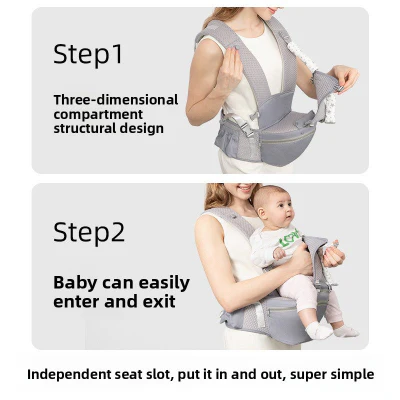 Comment garder votre bébé près de vous tout en retrouvant votre autonomie? Notre porte bébé combine ingénieusement sécurité et praticité. Le compartiment bébé indépendant facilite l’installation et le retrait de votre enfant, même quand vous êtes seul(e). Fini les contorsions compliquées ou les attachements complexes! Le tabouret de hanche détachable soulage instantanément votre dos et vos épaules, redistribuant le poids de façon équilibrée, même après de longues périodes de portage.