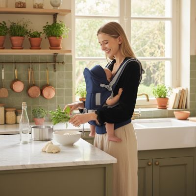 Notre porte bébé ergonomique répartit instantanément le poids de votre bébé de manière équilibrée sur vos hanches et vos épaules.