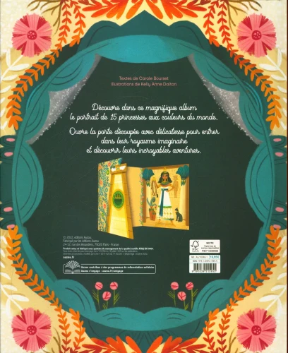 À droite, une superbe illustration présente chaque princesse, vêtue de mille couleurs, pour émerveiller les yeux des enfants et nourrir leur créativité.