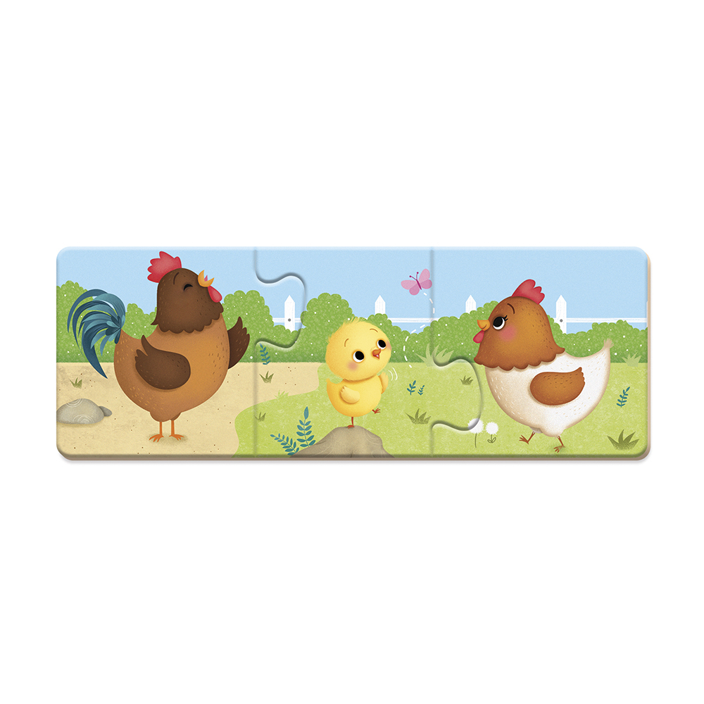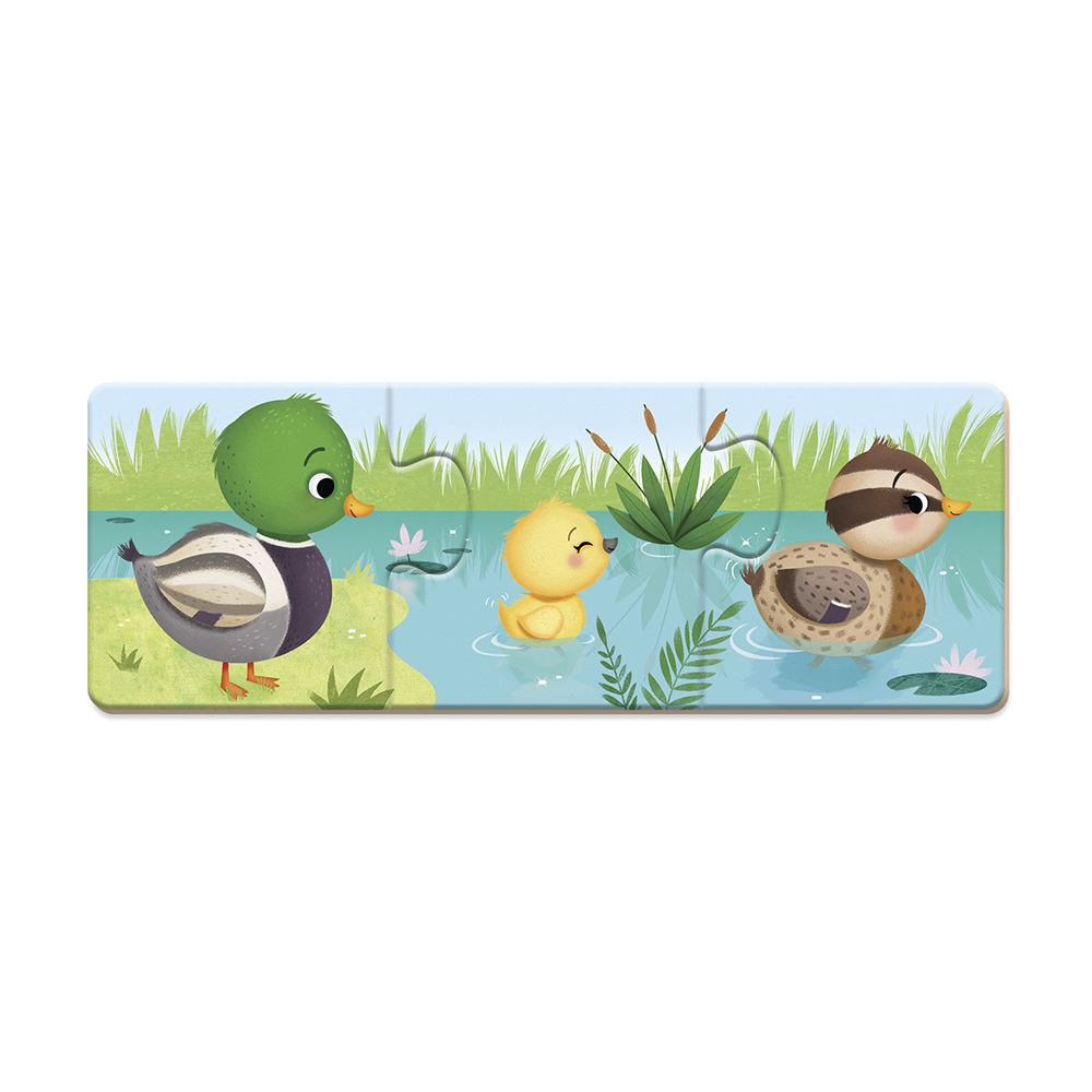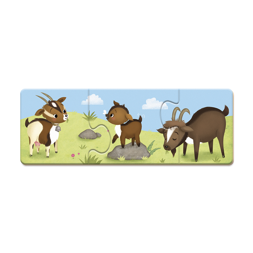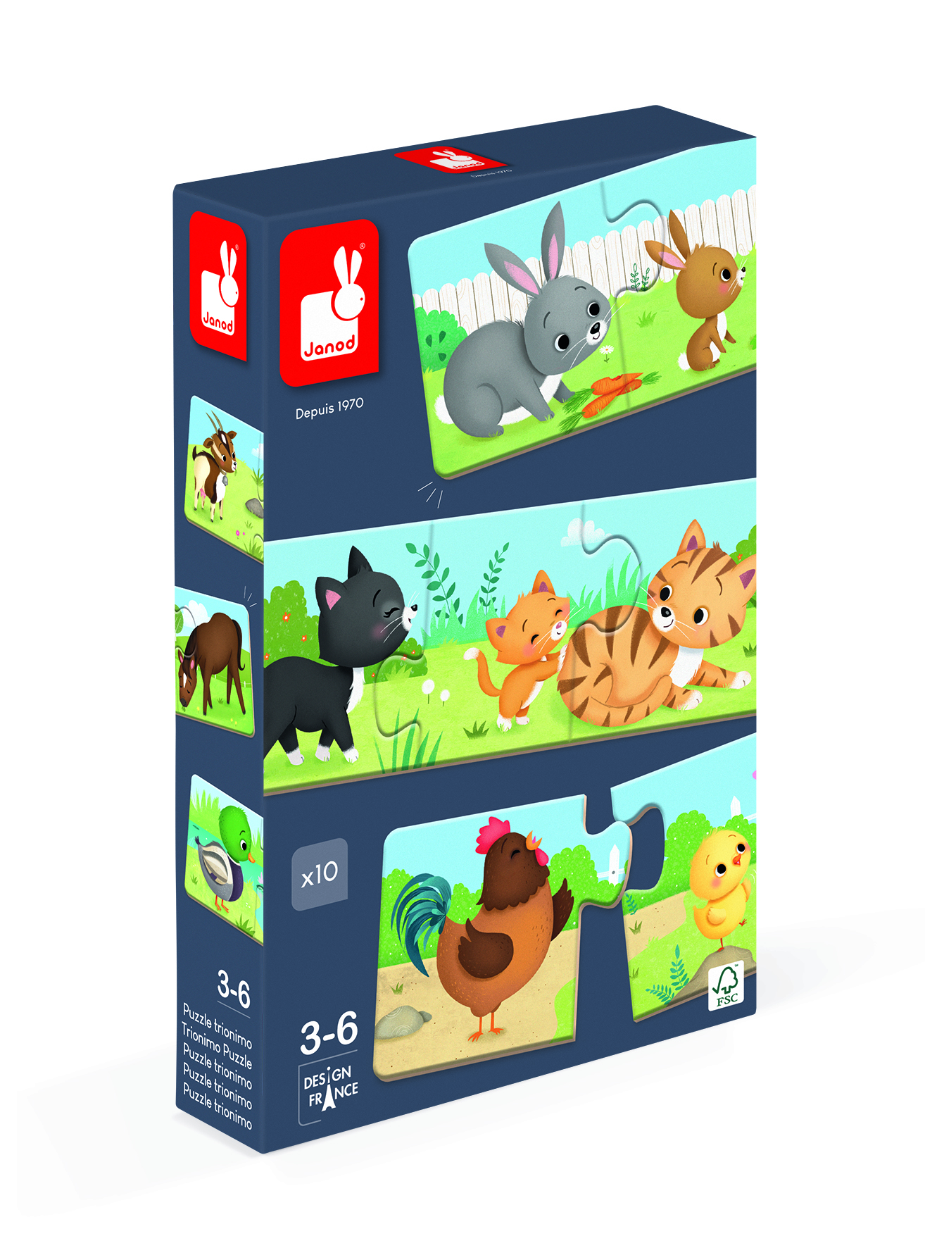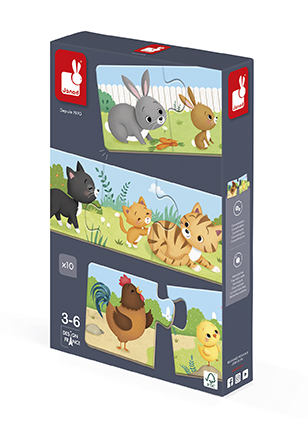◦ Des puzzles de 3 pièces à assembler ◦ Un jeu sur le thème des animaux ◦ En carton issu de forêts gérées durablement
