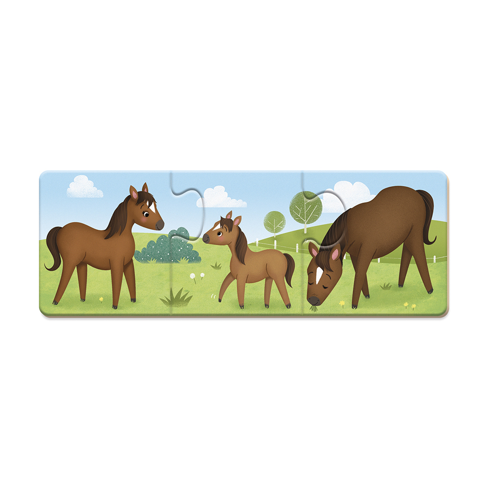 Les bébés animaux ont perdu leur papa et leur maman, aide-les à les retrouver ! Ce jeu d’association est idéal pour développer la motricité fine de votre enfant, il l’aidera à découvrir et à se familiariser avec les animaux et leur famille. Contient 10 puzzles de 3 pièces. Ce produit est composé de matériaux certifiés FSC® et de matériaux contrôlés.
