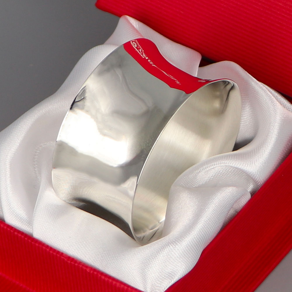 Rond de serviette argent (métal argenté) Évasé Uni. H : 3 cm | Ø : 4.5 cm. Un rond de serviette Aubry-Cadoret. Offrez un rond de serviette personnalisé avec la gravure d’un prénom et une date. Rond de serviette classique, évasé et uni.