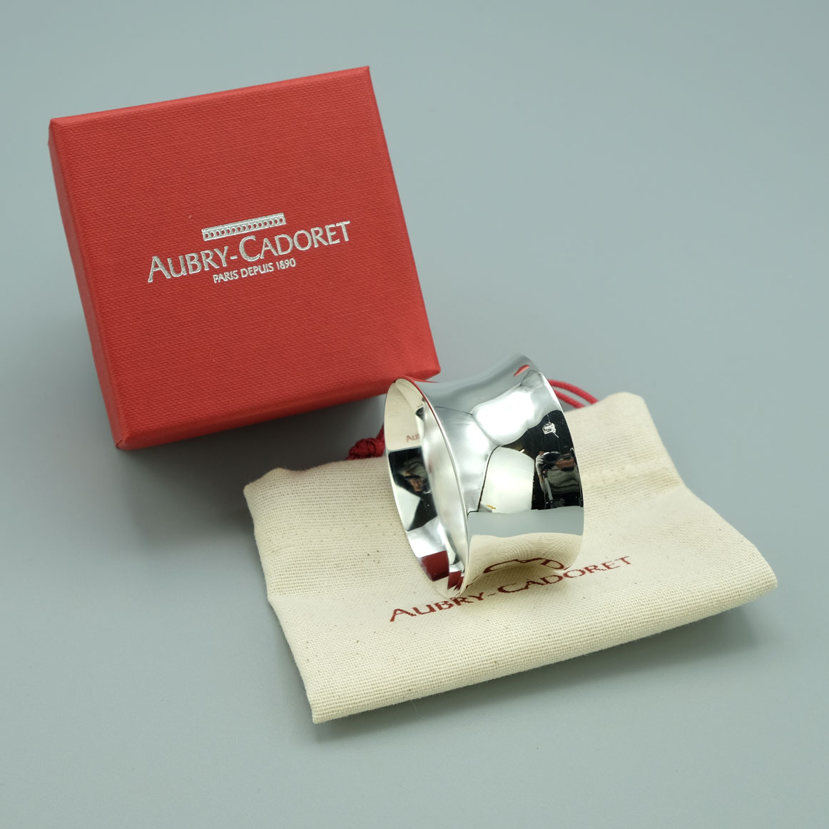 Un rond de serviette de fabrication française de haute qualité signé par la Maison Aubry-Cadoret (1890).