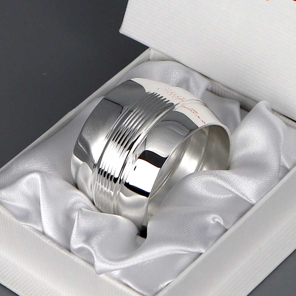Rond de serviette argent (métal argenté) Tonneau Filets Multiples. H : 3 cm | Ø : 4.5 cm. Un rond de serviette Daniel Crégut. Offrez un rond de serviette personnalisé avec la gravure d’un prénom et une date. La forme arrondie et les filets centraux de ce rond de serviette lui apporte élégance et raffinement.