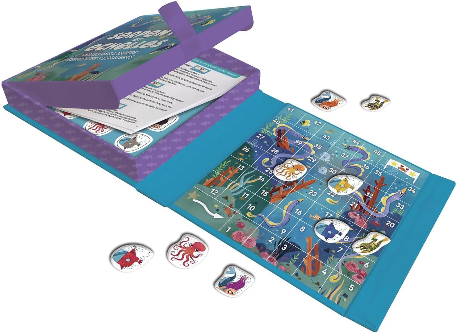 Défie tes amis ou ta famille sous la mer avec des anguilles farceuses et des coraux pour progresser ! Soit le premier sur la ligne d’arrivée ! Un p’tit jeu magnétique facile à transporter ! Avec son plateau magnétique ne perds plus aucune pièce et joue partout ! Pages : 10 Age : dès 6 […]